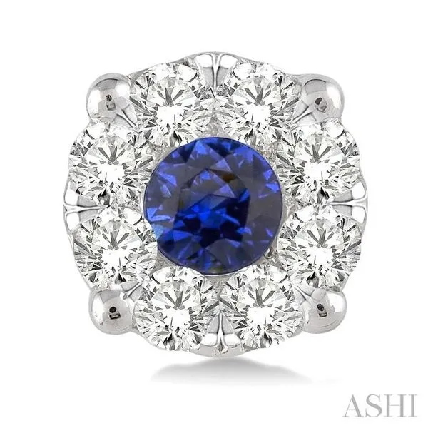 3.3 MM Round Cut Sapphire and 1/2 Ctw Lovebright Diamond Precious Earrings in 14K White Gold Image 2 Adler's Diamonds Saint Louis, MO