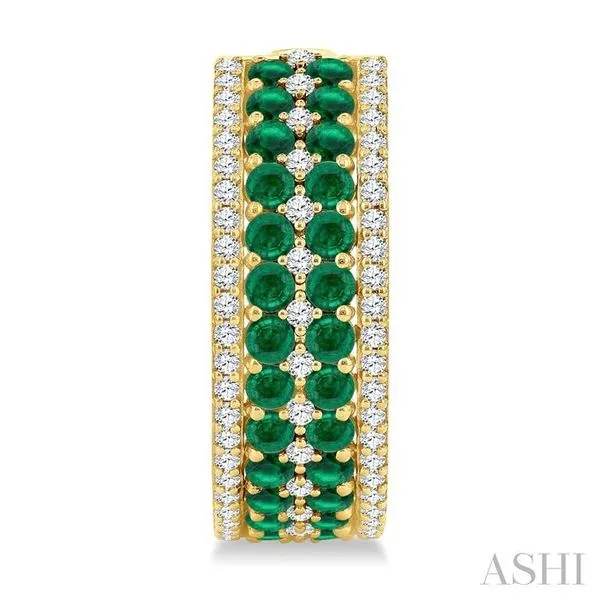 3/4 Ctw 2.00MM Emerald and Round Cut Diamond Precious Hoop Earring in 14K Yellow Gold Image 2 Adler's Diamonds Saint Louis, MO
