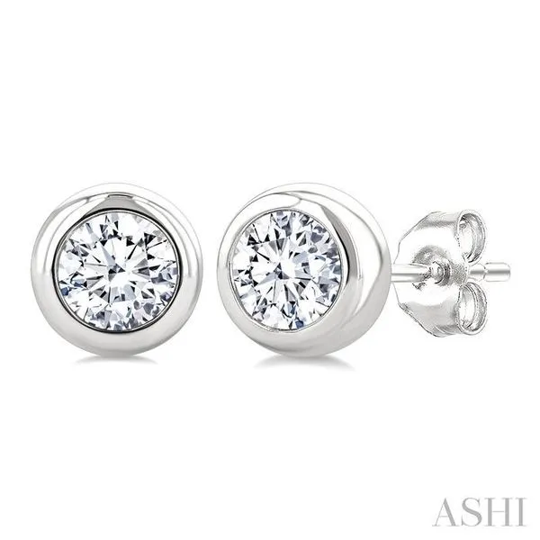 3/4 Ctw Bezel Set Round Cut Diamond Stud Earrings in 14K White Gold Image 2 Adler's Diamonds Saint Louis, MO