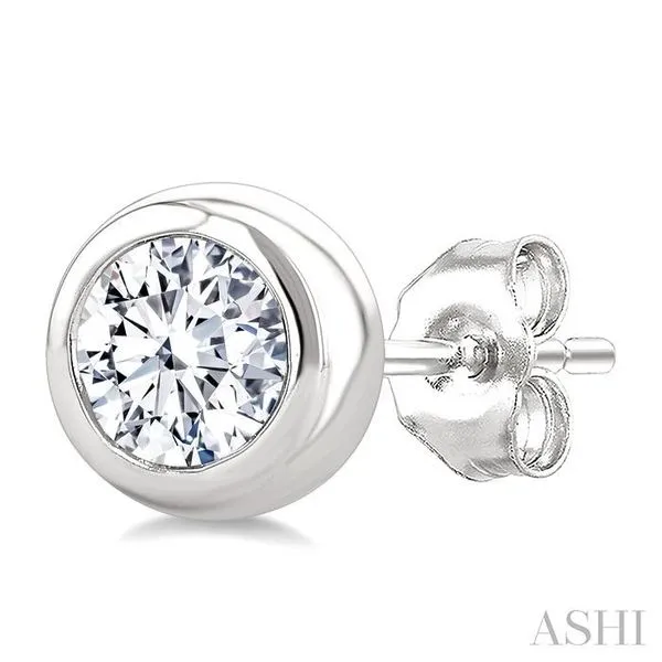 3/4 Ctw Bezel Set Round Cut Diamond Stud Earrings in 14K White Gold Image 3 Adler's Diamonds Saint Louis, MO