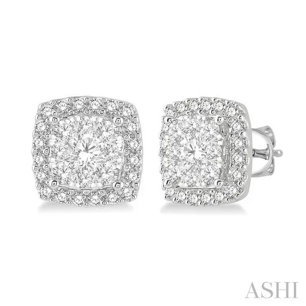 3/4 Ctw Cushion Shape Lovebright Round Cut Diamond Stud Earrings in 14K White Gold Adler's Diamonds Saint Louis, MO