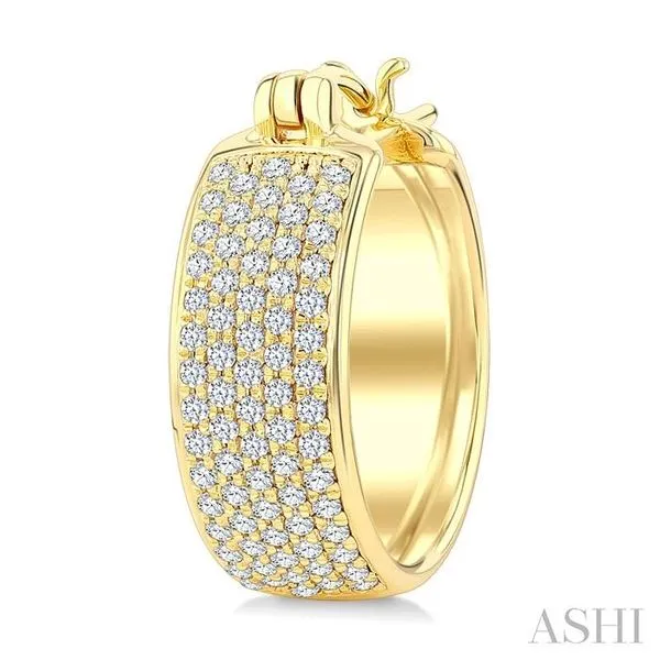 3/4 Ctw Five-Row Pave Set Round Cut Diamond Fashion Huggies in 14K Yellow Gold Image 2 Adler's Diamonds Saint Louis, MO