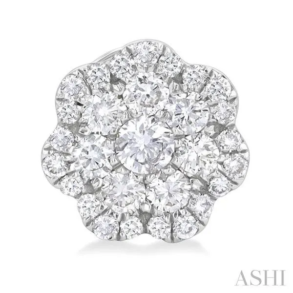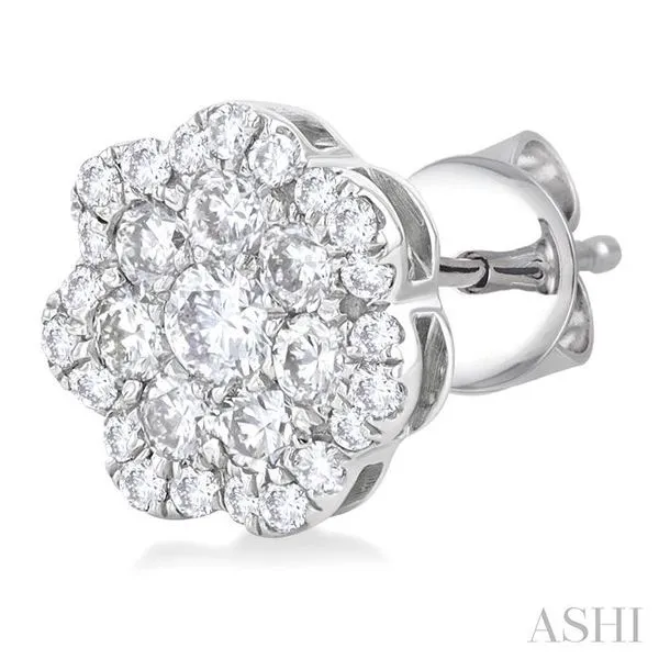 3/4 Ctw Flower Pattern Round Cut Diamond Fashion Stud Earrings in 14K White Gold Image 2 Adler's Diamonds Saint Louis, MO