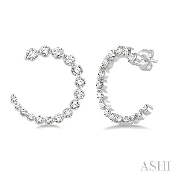 3/4 Ctw Graduated Round Cut Diamond Open Hoop Earring in 14K White Gold Adler's Diamonds Saint Louis, MO