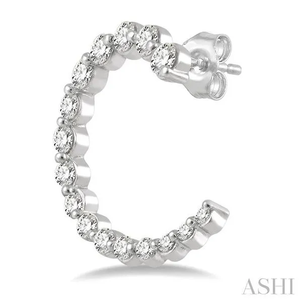3/4 Ctw Graduated Round Cut Diamond Open Hoop Earring in 14K White Gold Image 3 Adler's Diamonds Saint Louis, MO