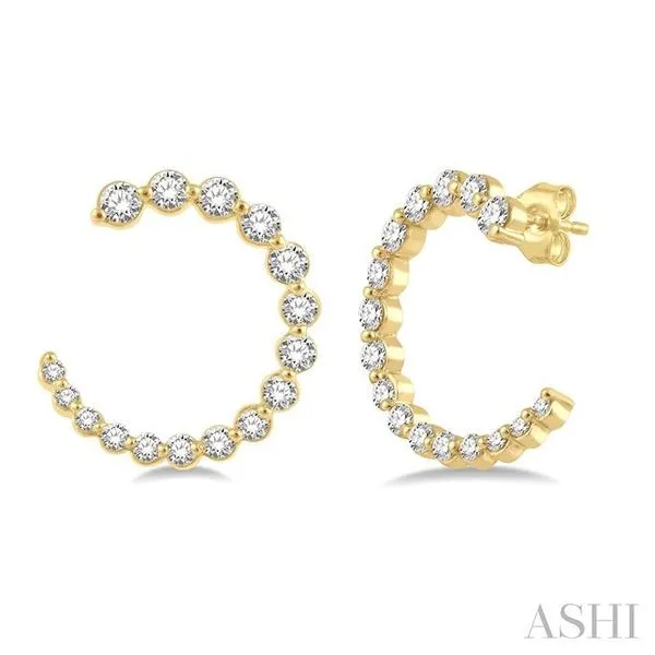 3/4 Ctw Graduated Round Cut Diamond Open Hoop Earring in 14K Yellow Gold Adler's Diamonds Saint Louis, MO