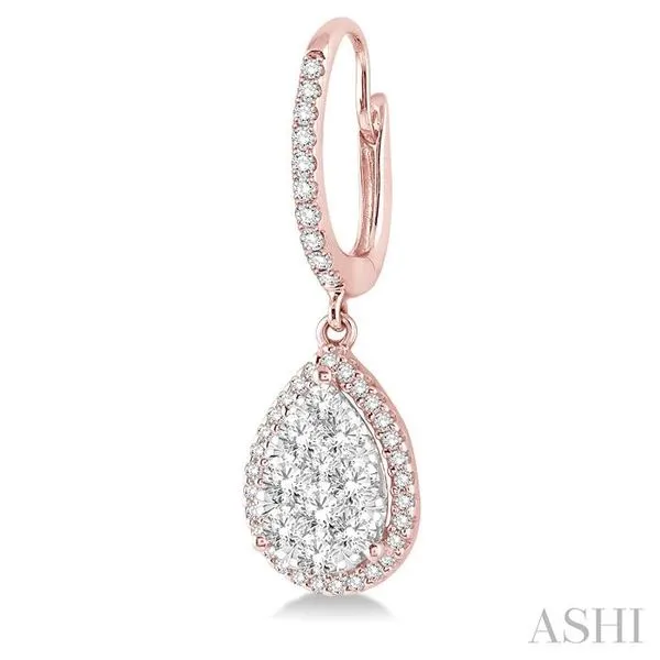 3/4 Ctw Pear Shape Diamond Lovebright Earrings in 14K Rose and White Gold Image 3 Adler's Diamonds Saint Louis, MO