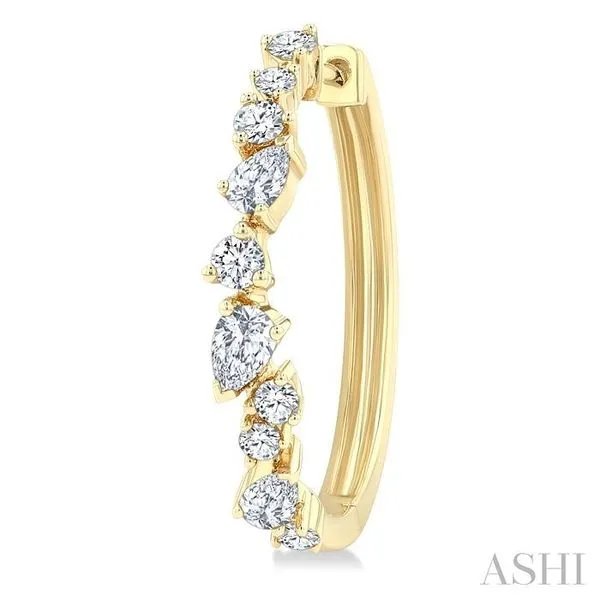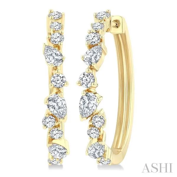 3/4 Ctw Round & Pear Diamond Cut Scatter Fashion Hoop Earrings in 14K Yellow Gold Image 2 Adler's Diamonds Saint Louis, MO