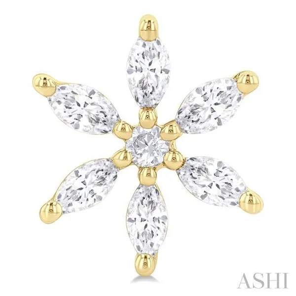 3/8 Ctw Floral Motif Marquise and Round Cut Diamond Fashion Stud Earring in 14K Yellow Gold Image 2 Adler's Diamonds Saint Louis, MO