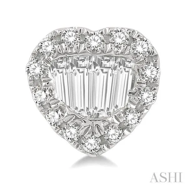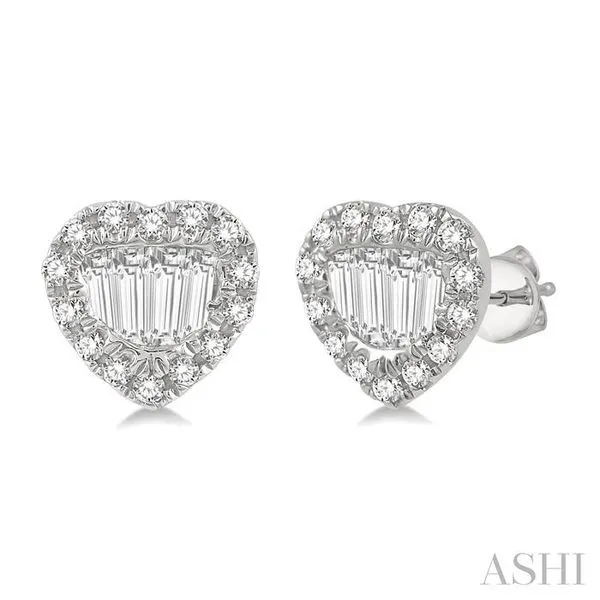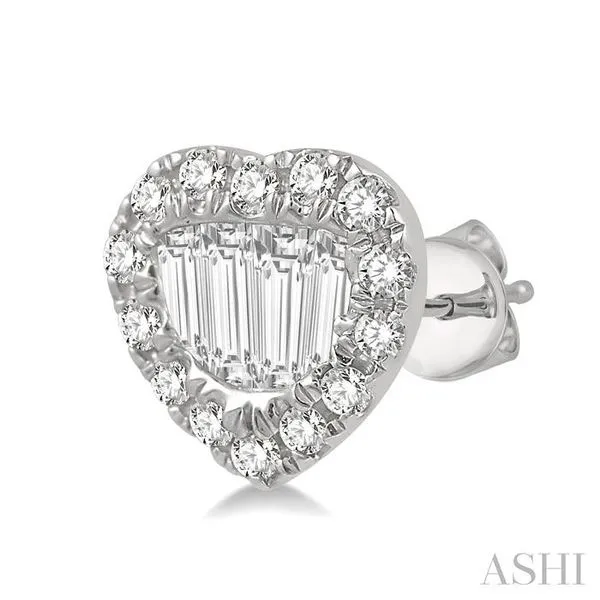3/8 Ctw Heart Shape Baguette Center & Round Cut Diamond Earrings in 14K White Gold Image 2 Adler's Diamonds Saint Louis, MO