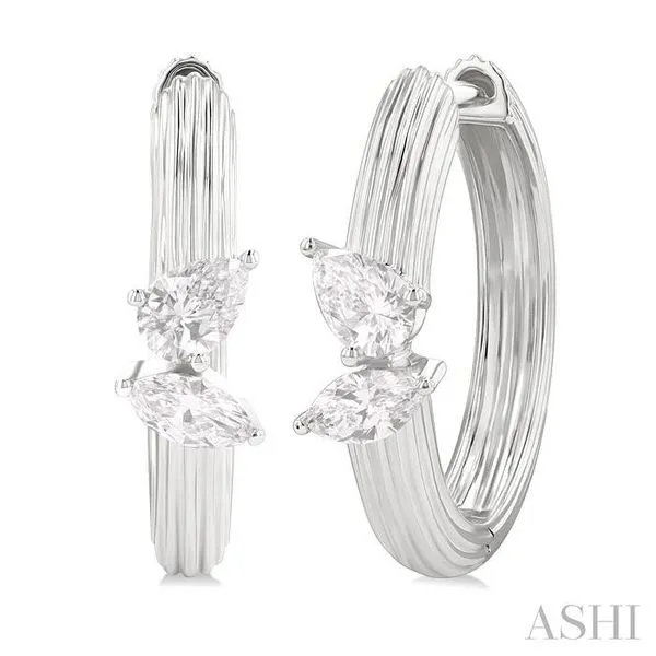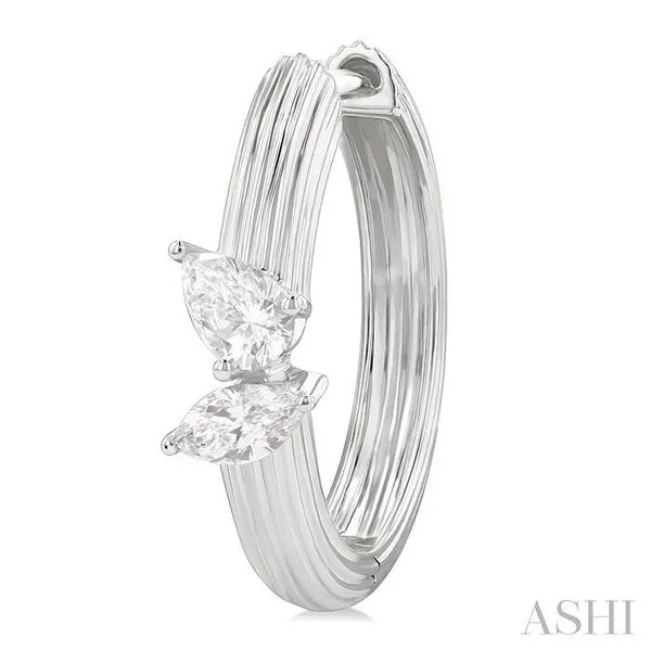 3/8 Ctw Marquise and Pear Cut Diamond Ribbed Hoop Fashion Earrings in 14K White Gold Image 2 Adler's Diamonds Saint Louis, MO