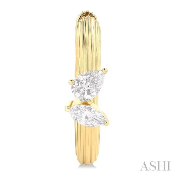 3/8 Ctw Marquise and Pear Cut Diamond Ribbed Hoop Fashion Earrings in 14K Yellow Gold Image 2 Adler's Diamonds Saint Louis, MO