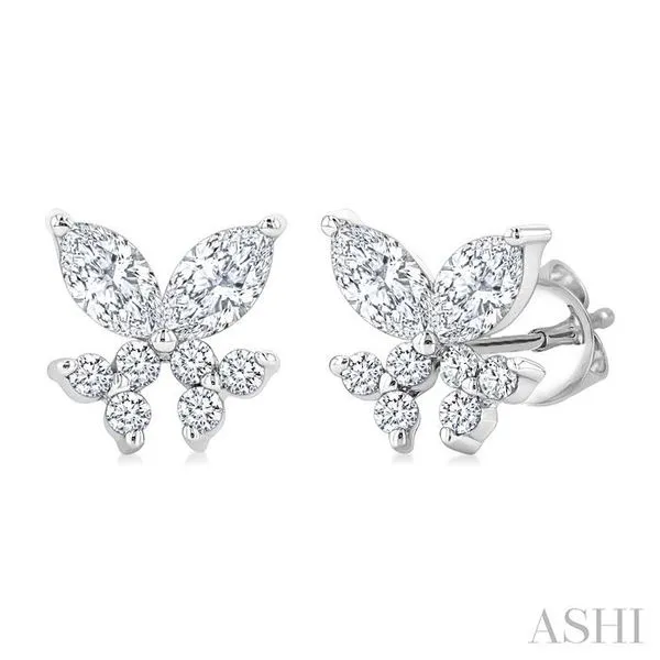 3/8 Ctw Marquise and Round Cut Diamond Criss Cross Fish Stud Earrings in 14K White Gold Image 2 Adler's Diamonds Saint Louis, MO
