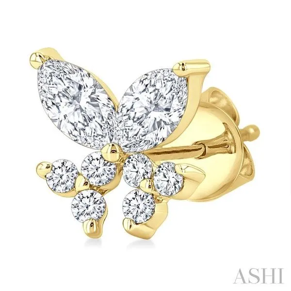3/8 Ctw Marquise and Round Cut Diamond Criss Cross Fish Stud Earrings in 14K Yellow Gold Image 3 Adler's Diamonds Saint Louis, MO
