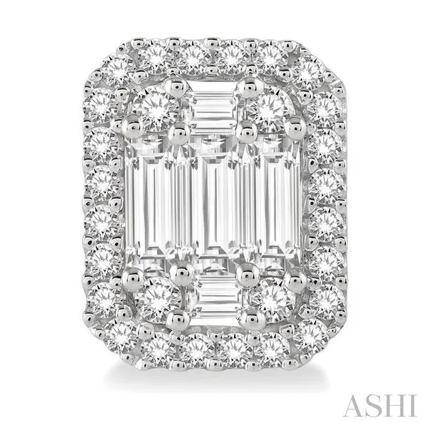 3/8 Ctw Octagonal Baguette & Round Cut Diamond Stud Earrings in 14K White Gold Image 2 Adler's Diamonds Saint Louis, MO