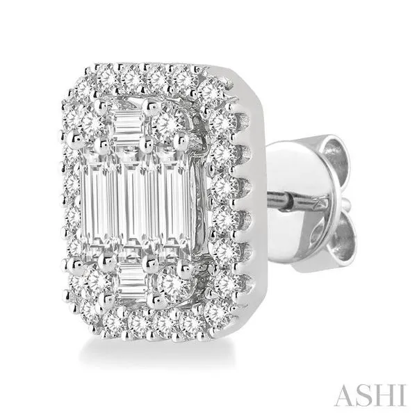 3/8 Ctw Octagonal Baguette & Round Cut Diamond Stud Earrings in 14K White Gold Adler's Diamonds Saint Louis, MO