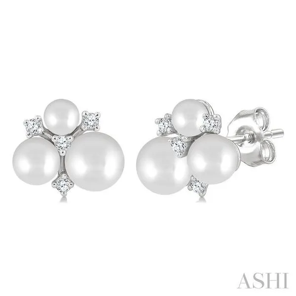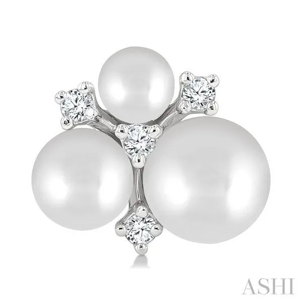 3MM, 4MM & 5MM Cultured Pearl and 1/10 Ctw Round Cut Diamond Fashion Earrings in 10K White Gold Image 2 Adler's Diamonds Saint Louis, MO