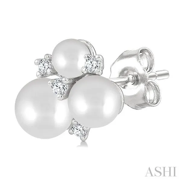 3MM, 4MM & 5MM Cultured Pearl and 1/10 Ctw Round Cut Diamond Fashion Earrings in 10K White Gold Image 3 Adler's Diamonds Saint Louis, MO