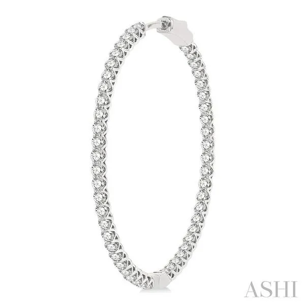 4 Ctw Inside-Out Round Cut Diamond 1 1/2 Inch Hoop Earrings in 14K White Gold Image 3 Adler's Diamonds Saint Louis, MO