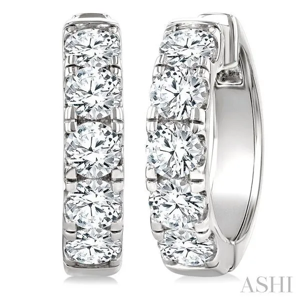 4 Ctw Round Cut Diamond Hoop Earrings in 14K White gold Image 4 Adler's Diamonds Saint Louis, MO
