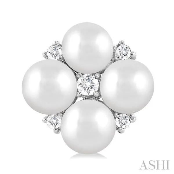 4 MM Round Shape Floral Cultured Pearls and 1/10 Ctw Round Cut Diamond Fashion Stud Earring in 10K White Gold Image 2 Adler's Diamonds Saint Louis, MO