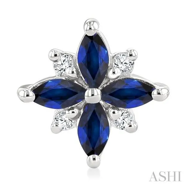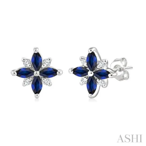 4X2 MM Marquise Shape Sapphire and 1/10 Ctw Round Cut Diamond Blossom Earrings in 10K White Gold Image 2 Adler's Diamonds Saint Louis, MO