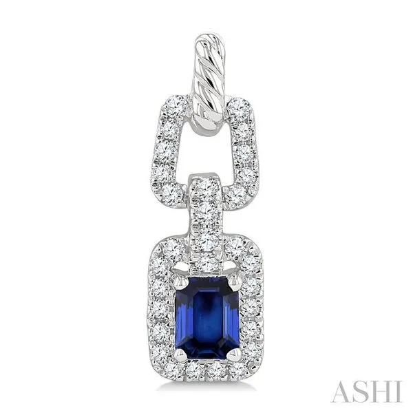 4X3 MM Octagon Shape Sapphire and 1/4 Ctw Round Cut Diamond Link Precious Earrings in 14K White Gold Image 3 Adler's Diamonds Saint Louis, MO