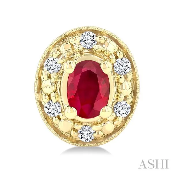 4x3 MM Oval Shaped Ruby and 1/10 Ctw Single Cut Diamond Earrings in 10K Yellow Gold Image 2 Adler's Diamonds Saint Louis, MO