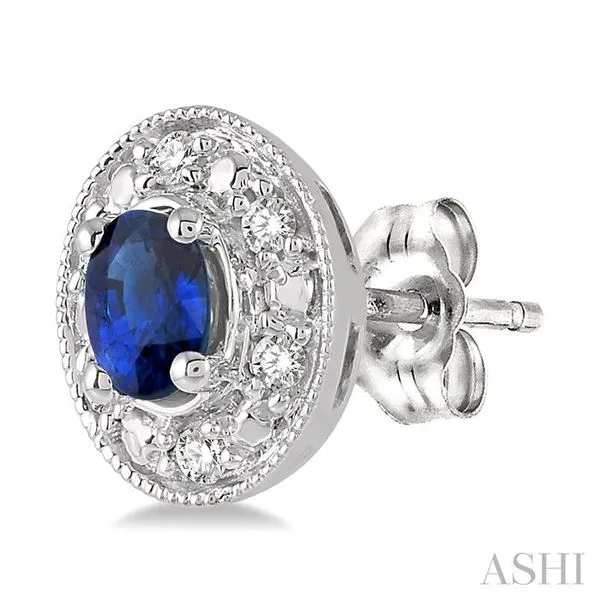 4x3 MM Oval Shaped Sapphire and 1/10 Ctw Single Cut Diamond Earrings in 14K White Gold Image 2 Adler's Diamonds Saint Louis, MO