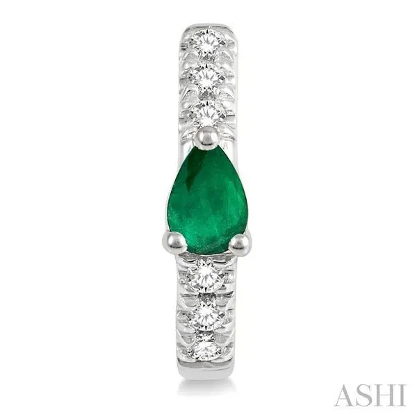 4X3 MM Pear Cut Emerald and 1/10 Ctw Round Cut Diamond Petite Huggie Earrings in 10K White Gold Image 2 Adler's Diamonds Saint Louis, MO