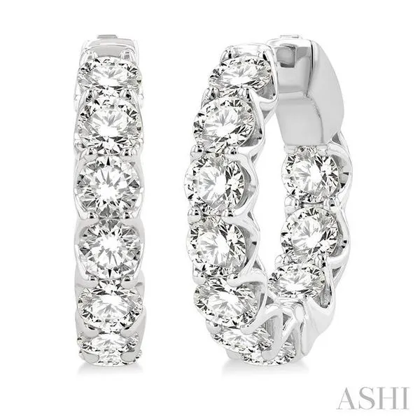 5 Ctw Inside-Out Embellished Round Cut Diamond Hoop Earrings in 14K White Gold Image 2 Adler's Diamonds Saint Louis, MO