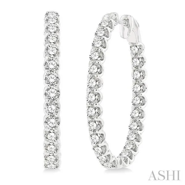 5 Ctw Inside-Out Round Cut Diamond Oval Shape Hoop Earrings in 14K White Gold Image 3 Adler's Diamonds Saint Louis, MO