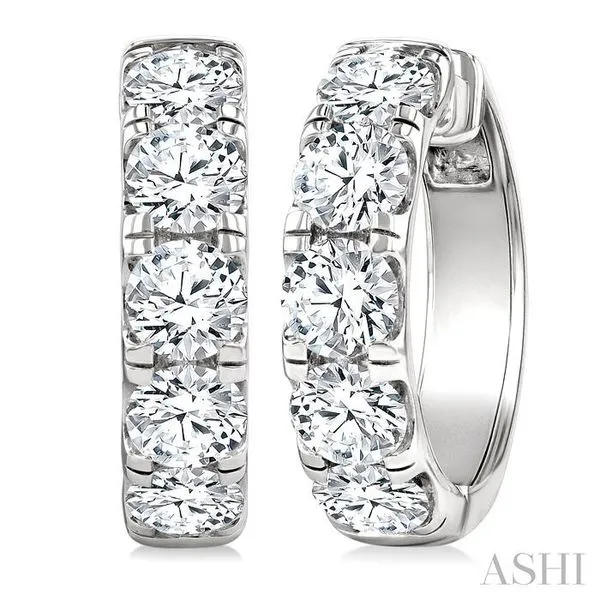 5 Ctw Round Cut Diamond Hoop Earrings in 14K White gold Image 3 Adler's Diamonds Saint Louis, MO