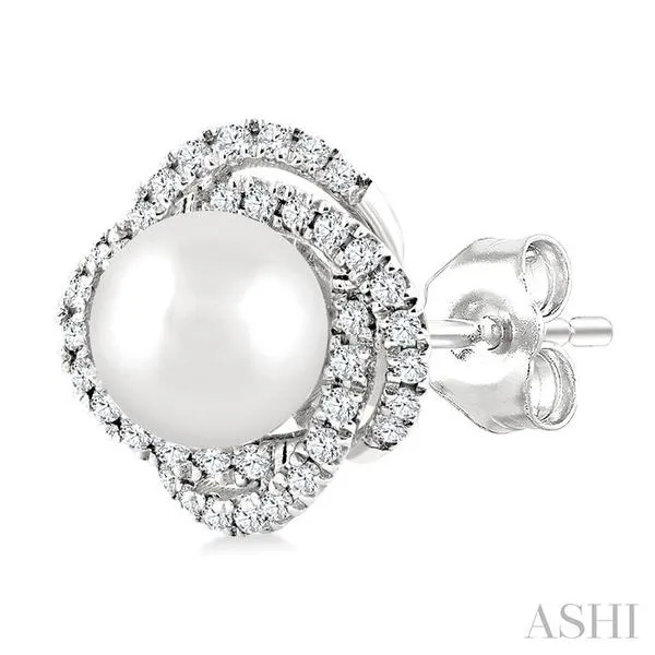5 MM Cultured Pearl and 1/4 Ctw Round Cut Diamond Petite Fashion Earrings in 10K White Gold Image 2 Adler's Diamonds Saint Louis, MO