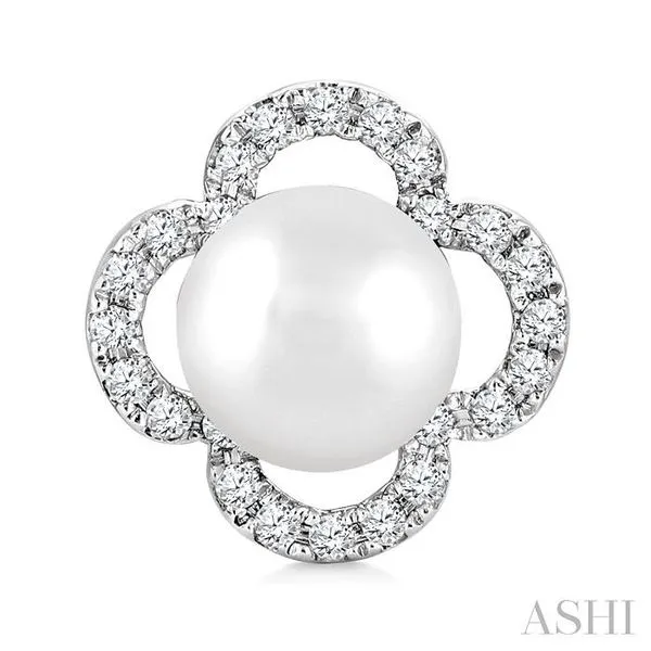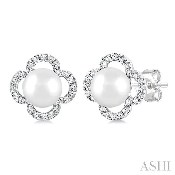 5 MM Cultured Pearl and 1/6 Ctw Round Cut Diamond Clover Petite Fashion Earrings in 10K White Gold Adler's Diamonds Saint Louis, MO
