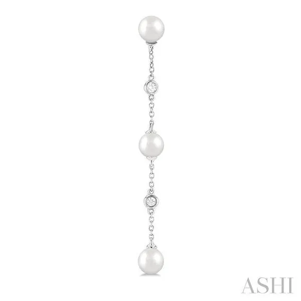 5 MM Round Shape Cultured Pearl and 1/10 Ctw Round Cut Diamond Station Long Earring in 14K White Gold Image 2 Adler's Diamonds Saint Louis, MO