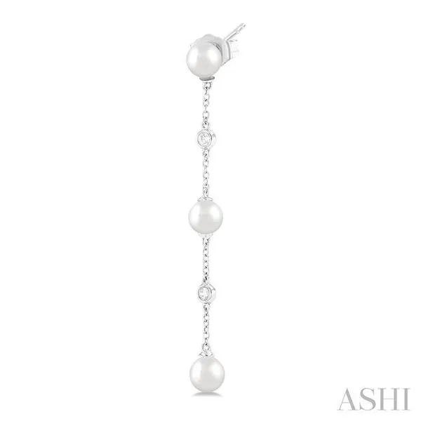 5 MM Round Shape Cultured Pearl and 1/10 Ctw Round Cut Diamond Station Long Earring in 14K White Gold Image 3 Adler's Diamonds Saint Louis, MO