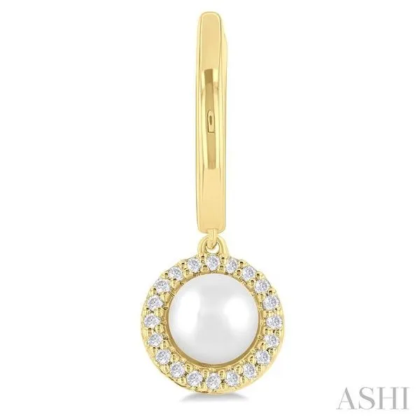 5.5 MM Round Shape Cultured Pearl and 1/8 Ctw Petite Round Cut Diamond Halo Fashion Huggies in 10K Yellow Gold Image 3 Adler's Diamonds Saint Louis, MO
