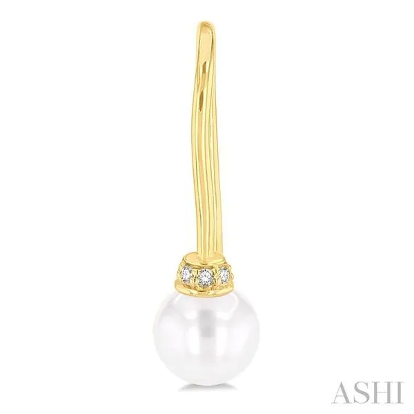 5.5 MM Round Shape Cultured Pearls and 1/20 Ctw Round Cut Diamond Petite Fashion Earring in 10K Yellow Gold Image 2 Adler's Diamonds Saint Louis, MO