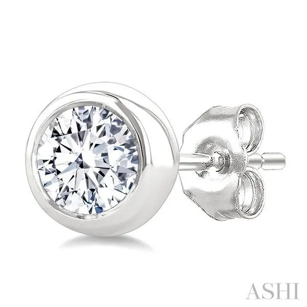 5/8 Ctw Bezel Set Round Cut Diamond Stud Earrings in 14K White Gold Image 3 Adler's Diamonds Saint Louis, MO