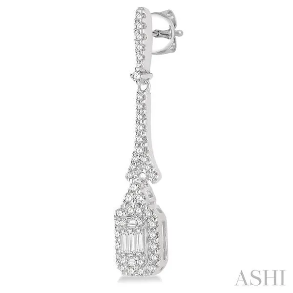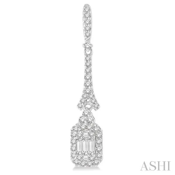 5/8 Ctw Long Baguette & Round Cut Diamond Earring in 14K White Gold Image 2 Adler's Diamonds Saint Louis, MO