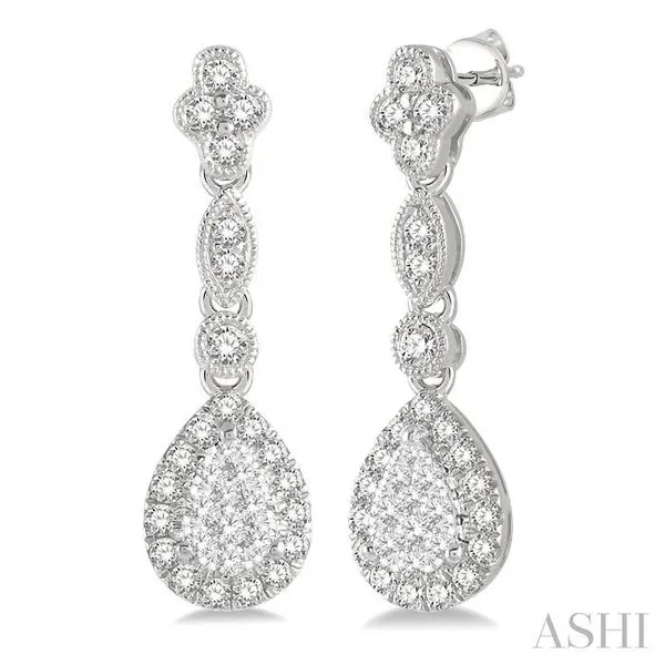 5/8 Ctw Pear Shape Halo Lovebright Round Cut Diamond Earrings in 14K White Gold