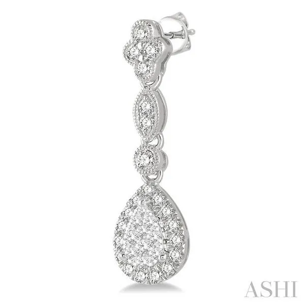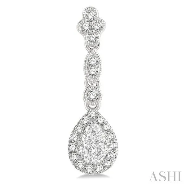 5/8 Ctw Pear Shape Halo Lovebright Round Cut Diamond Earrings in 14K White Gold Image 2 Adler's Diamonds Saint Louis, MO