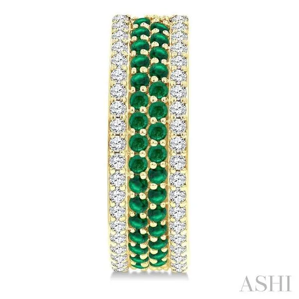 5/8 Ctw Twin Row 1.50MM Emerald and Round Cut Diamond Precious Hoop Earring in 14K Yellow Gold Image 2 Adler's Diamonds Saint Louis, MO