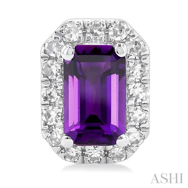 5x3 MM Octagonal Shape Amethyst and 1/8 Ctw Single Cut Diamond Halo Semi-Precious Stud Earrings in 10K White Gold Image 2 Adler's Diamonds Saint Louis, MO
