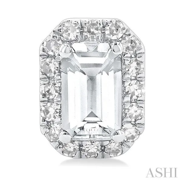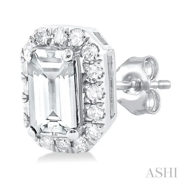 5x3 MM Octagonal Shape White Topaz and 1/8 Ctw Single Cut Diamond Halo Semi-Precious Stud Earrings in 10K White Gold Image 3 Adler's Diamonds Saint Louis, MO