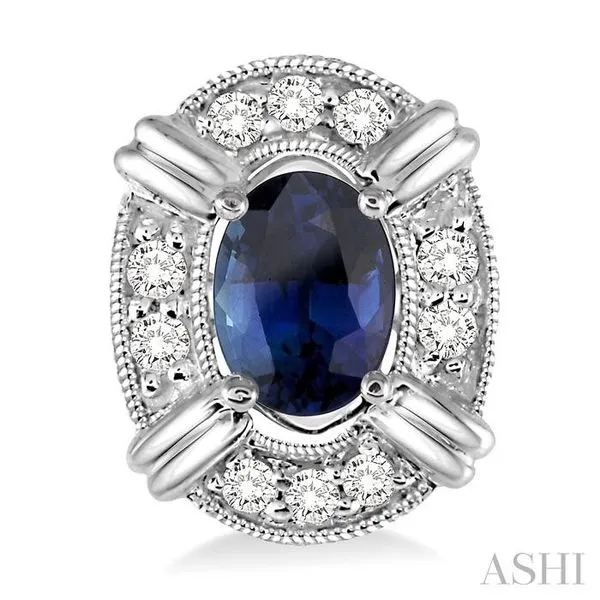 5x3 MM Oval Cut Sapphire and 1/10 Ctw Single Cut Diamond Earrings in 10K White Gold Adler's Diamonds Saint Louis, MO
