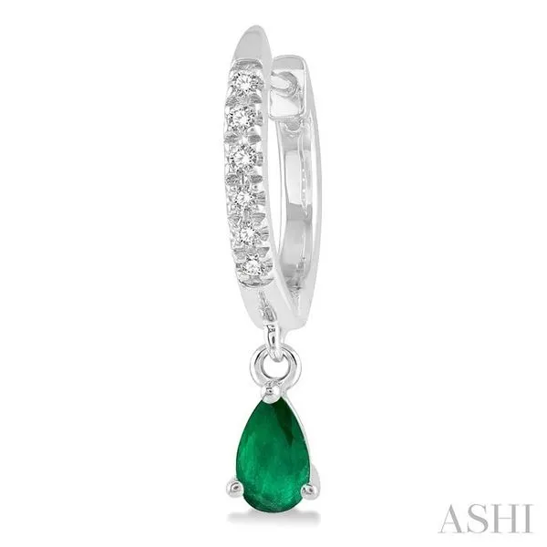 5x3 MM Pear Cut Emerald and 1/8 Ctw Round Cut Diamond Petite Fashion Huggie Earrings in 10K White Gold Image 3 Adler's Diamonds Saint Louis, MO