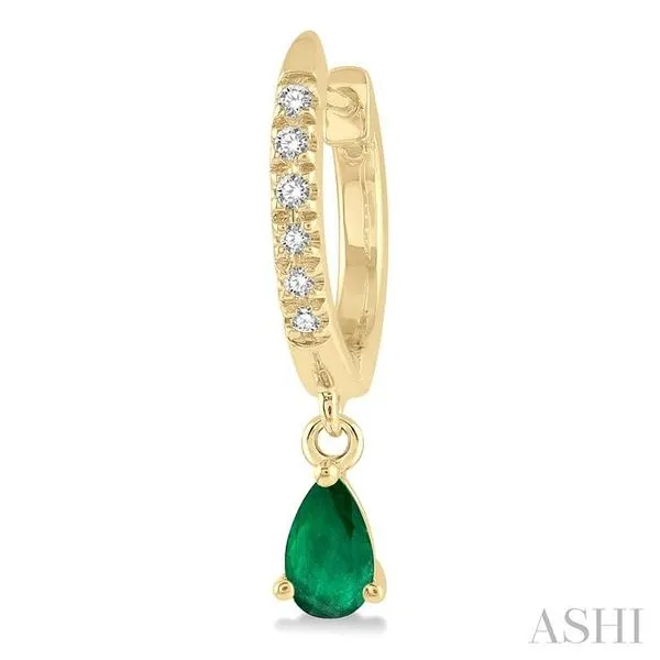 5x3 MM Pear Cut Emerald and 1/8 Ctw Round Cut Diamond Petite Fashion Huggie Earrings in 10K Yellow Gold Image 3 Adler's Diamonds Saint Louis, MO