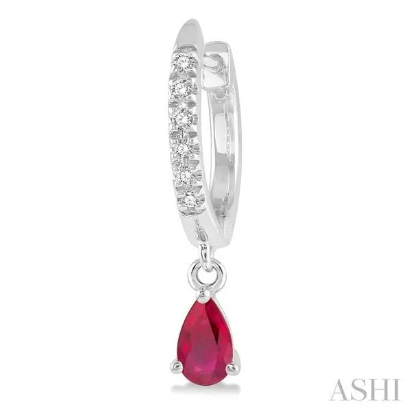 5x3 MM Pear Shape Ruby and 1/8 Ctw Round Cut Diamond Petite Fashion Huggie Earrings in 10K White Gold Image 2 Adler's Diamonds Saint Louis, MO